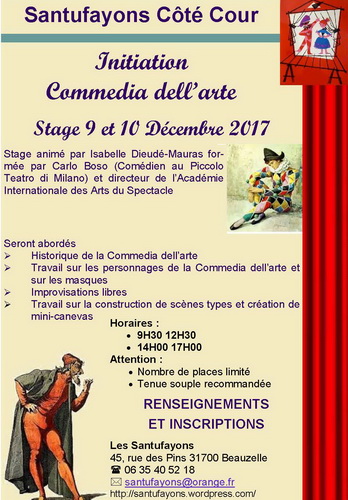 - Stage d’initiation à la Commedia dell’arte les 9 et 10 décembre 2017