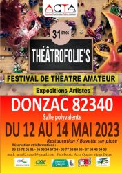 Théâtrofolies Théâtre Amateur en Midi Pyrénées Mai 12 - Mai 14Théâtrofolies31ème édition du festival de l'ACTA 82 à Donzac (82) Plus de détails »Festivals
