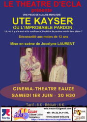 Ute Kayser ou l’improbable pardon Théâtre Amateur en Midi Pyrénées 01/06/2024Ute Kayser ou l'improbable pardon20:30 - 00:00de Claude Mercadié par l'Atelier Théâtre ECLA à Eauze, cinéma théâtre Plus de détails »Spectacles