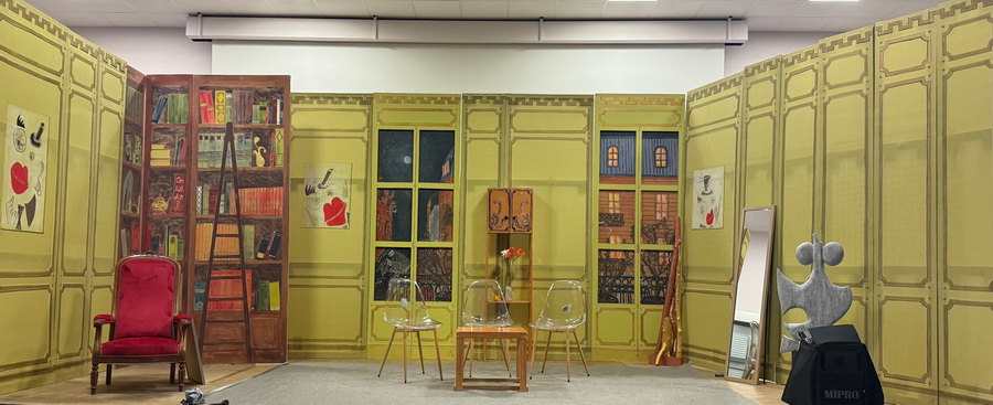 La Cie Le petit fauteuil rouge vend des décors d’appartement bourgeois : 19 panneaux de 2,85 m de haut, développé total de 12 m linéaire. Châssis en médium recouverts d’une toile tendue ignifugée M1, peints à la main. Temps de montage environ 2h à 2 personnes. Les panneaux sont visibles à Mariganc (31)