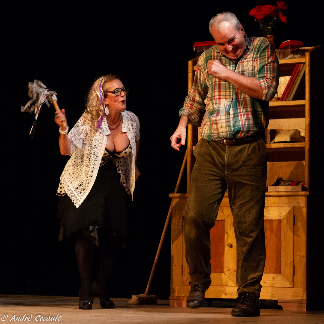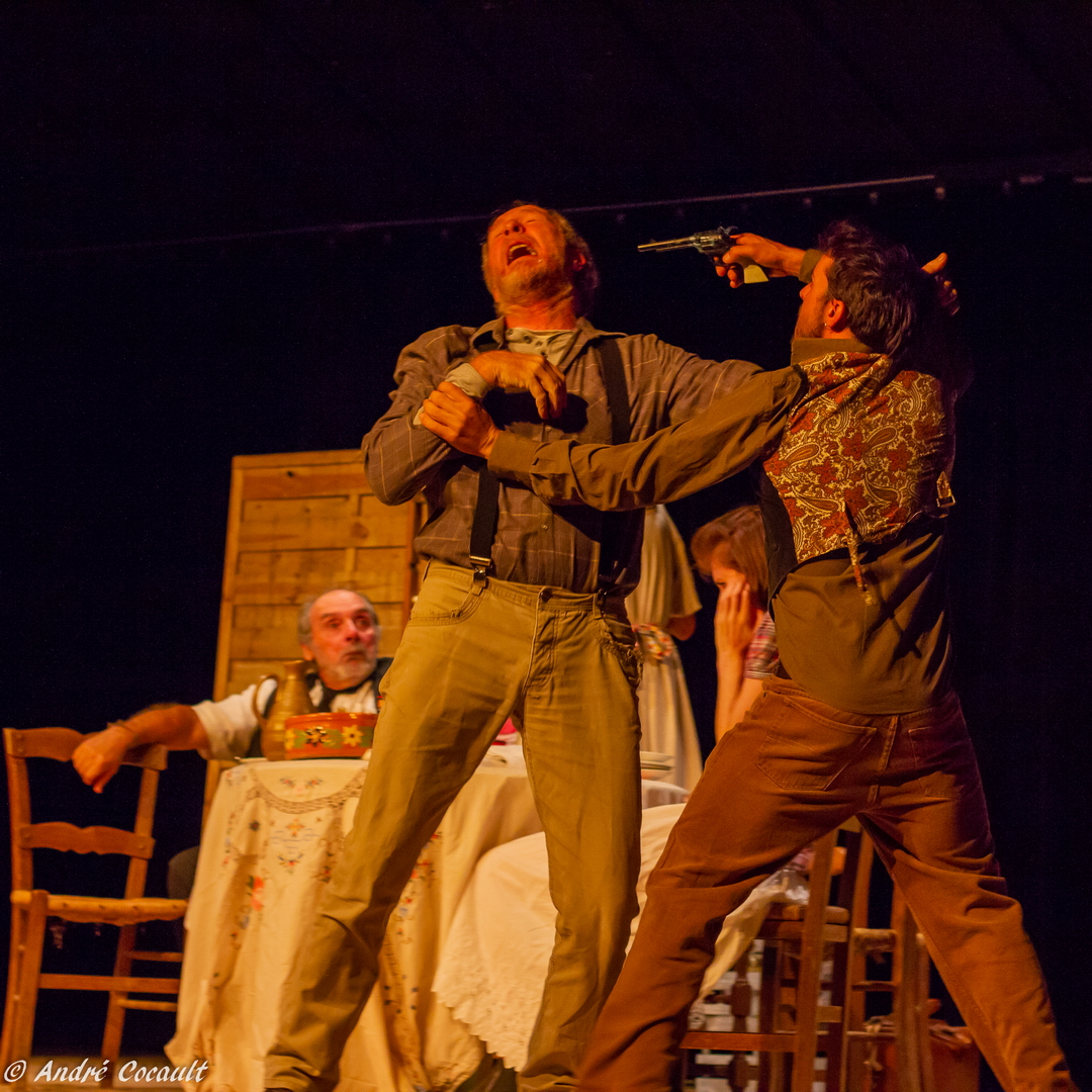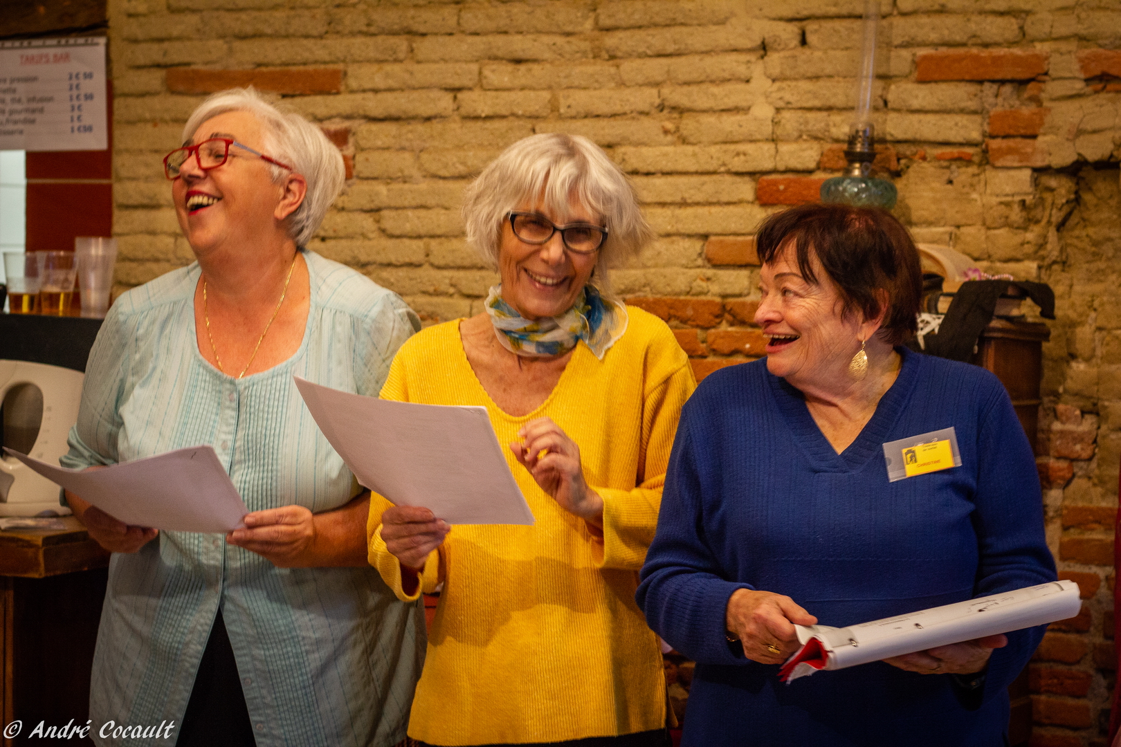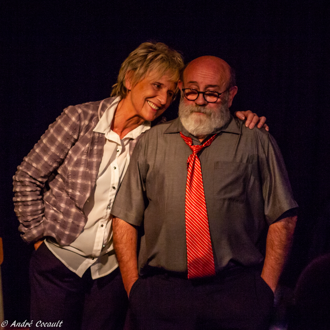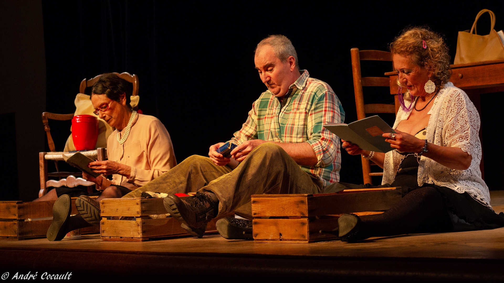 La lecture de textes contemporains, lors des intermèdes, par l’atelier lecture de la FNCTA a été un moment fort apprécié de tous, spectateurs et comédiens de même que l’intermède interprété par la Cie Acte d’eux sur le perron du centre culturel grâce à une météo clémente.